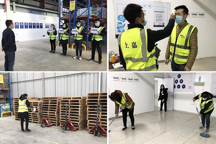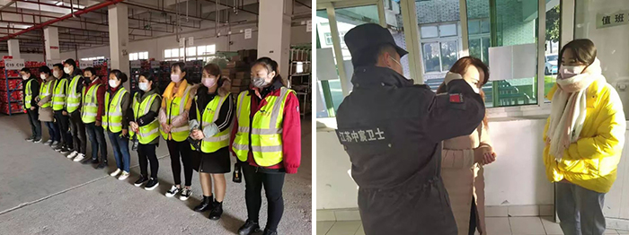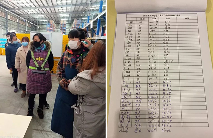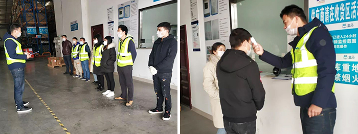●所有坚守岗位的一线员工,每日进入仓库前先测量体温,并做好记录实时反馈上报。所有到仓人员都要佩戴口罩。